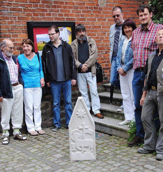 Das Sandstein-Relief vom Lamm Gottes, das hinweg trägt die Sünden der Welt, schmückte im Mittelalter den Giebel eines Lemgoer Stadtores, fiel aber der Stadtausweitung und dem Abbruch zum Opfer. So fand die alte Steinmetzarbeit in den letzten 100 Jahren einen Ehrenplatz in der Stirnwand des CVJM-Hauses an der Lemgoer Neuen Straße. Im Laufe der Zeit verwitterte der weiche Sandstein aber weiter und das Bildnis löste sich bis zur Unkenntlichkeit auf.